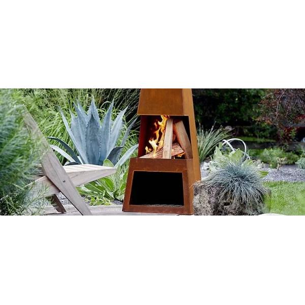 Corten Steel Chiminea is modern and contemporary in design and would look great in any garden or on a patio or terrace. Beautifully crafted using high quality, heavy gauge rolled steel, and then finished with a heat resistant coating. The solid construction will ensure long lasting durability. Prolong those chilly evenings by sitting around the cosy warmth and ambience of this great wood-burning outdoor heater which is ideal for entertaining all year round.