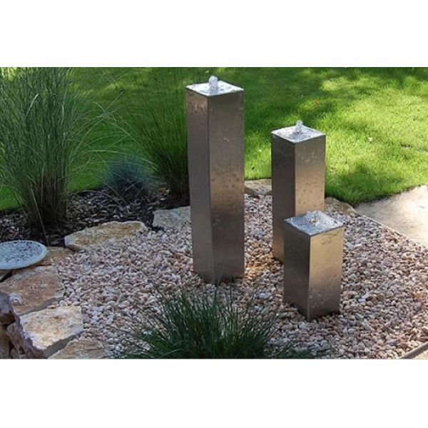 This is Square Cylinder Stainless Steel Outdoor Cascading Garden Water Fountain. The fountain is a in square cylinder shape with brushed finish. it will create a stricking focal point when this stainless steel water fountain is placed in garden as a decoration.